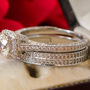 The solitaire is sold with the matching band, which is also fully encrusted with diamonds.