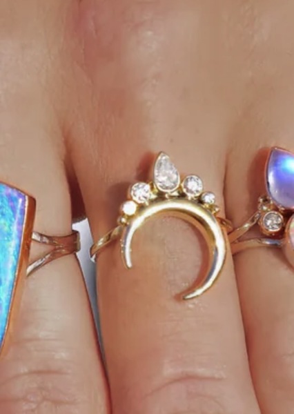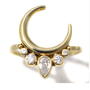 I am selling a never-worn ring purchased from angel alchemy jewelry. This crescent moon dreamcatcher ring is done in solid 14k yellow gold. The diamonds are clear and sparkly. It’s a size 7.25, but can be resized by any local jeweler. It was $1450 when i purchased it 2 years ago.