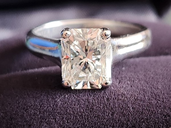 This is a big, bold, stunning piece. The diamond is eye-clean, bright and white.