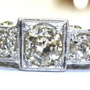 Art Deco antique 0.92 carat old mine cut diamond ring, set in 18K white gold. The center diamond is 0.62 carats, and two outer diamonds are 0.15 carats each. Diamond color is KLM with I1 clarity. Ring measurements are size 6.25. Dimensions are 16x7mm face, 5mm rise, and 1mm wide shank. Marked 18K gold. Ships in jewelry box. No returns. Shipping is $20 US.