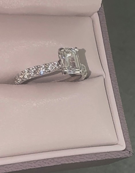 Selling a gorgeous engagement ring with a 1.51 carat emerald cut diamond, GIA certified (Report #2456694866). The center diamond is H color / VVS1 clarity — exceptionally clean and bright. It’s set in a 14K white gold band with ~0.95ct of round brilliant diamonds (G–H color, SI clarity) along the shank, adding extra sparkle without overwhelming the center stone.