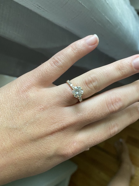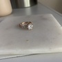 14k rose gold round 8mm Moissanite engagement ring with 8 band diamonds weighing .40 ct. Paid 3000 asking 1000