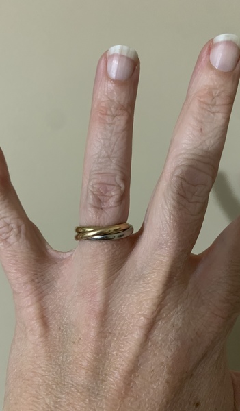 Blue Nile rolling ring in a size 7. Very comfortable, very light scratches from wear that could easily be polished out by your jeweler. Open to offers. Allison period Mori at Gmail.