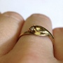 18k yellow solid gold snake ring with diamond eyes. Size 6.5. The snake ring has two diamond eyes 0.01 carat each. 7mm wide, 3mm rise, and a 1mm shank. Marked 750. Excellent condition. No returns. Will ship in a jewelry box. Shipping $20.