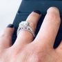 Buttercup- Cushion Halo Moissanite Ring. Resized to size 6. VVS2 clarity. 2.4 TCW and 1.5 carat center stone. 14K white gold. Like new and only worn for a few months, and stored in the original box.