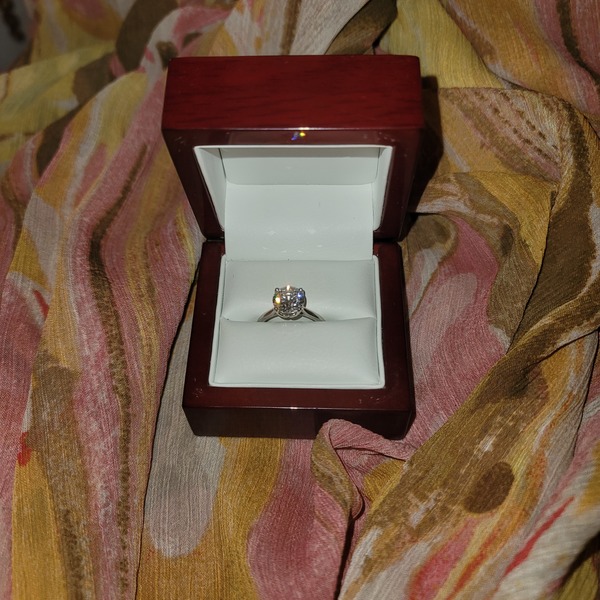 Beautiful 18k white gold round solitaire 2.5 carat Moisanitte diamond ring. Set in a elegant tulip head setting.