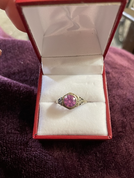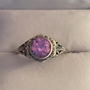 The sapphire is approximately 1.5ct., vintage sterling silver setting with 925 marking visible inside the band. Ring size 6 1/4. *DISCLAIMER* I do not have proof that it is natural, lab, heated etc. I previously bought it here on Loupe Troop but sadly the fit is too small for me. It shows as a pretty magenta pink indoors with flashes of bright pink and purple in the sunlight. Box will be included! Will ship only inside the US. Sale is final, no returns. Cross posted. You can contact me via email Sarahm637400@gmail.com and I’m open to offers!