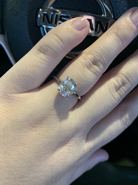 9x7 mm colorless oval moissanite ring, 14k white gold. Only worn a few times. Bought for $600. Price includes shipping.