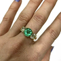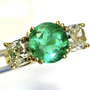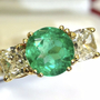Beautiful ring featuring an AGL certified 2.55 carat Colombian Emerald. Emerald is natural with only minor treatment per AGL. The emerald is set with two 1 carat cushion cut natural diamonds. The diamonds are J-K in color and SI1-SI2 clarity. Crafted in solid 14K yellow gold. Shipping is $20 US.