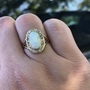 Looking for a unique engagement ring or a treat yourself piece this is I! 18k yellow gold with Rose Cut Diamonds and Opal! Over 100 years old and in gorgeous condition. The opal has flashes of fire and stunning colours and the diamonds twinkle like a dream. Can be sized. Sits nice and flat on the finger. All stones are well secured and the opal is in amazing shape. It’s stamped 18k on the inside of the shank. October’s birthstone never looked so good! $1,000.00