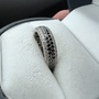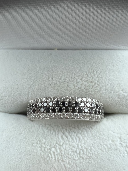This stunning, thick band has over 150 diamonds (black and white). Rarely worn and is a beautiful addition to any collection.