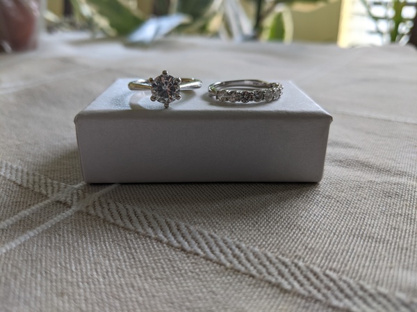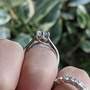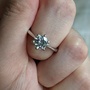 Purchased as a right hand ring and barely worn. Moissanite is conflict-free, extremely durable and beautifully sparkly.