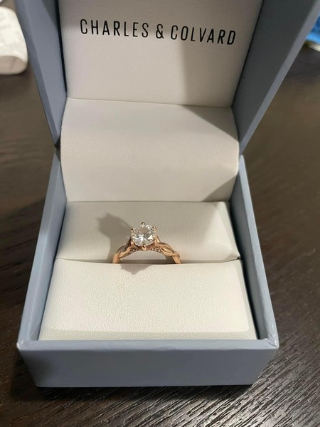 Forever One 1.11CTW Round colorless moissanite twisted band solitaire with side accents engagement ring in 14K rose Gold, size 6