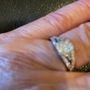 14K white gold Set with appr .20ctw trilliant diamonds (G-H, VS) and appr .35 ctw A Cut Above diamonds (F-G VS) Open basket Split shank V-tip for trilliant sides Keep ring petite and low profile overall