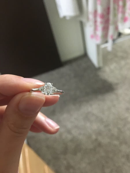 Oval cut moissanite ring with white gold diamond clusters. Size 5.5