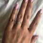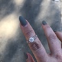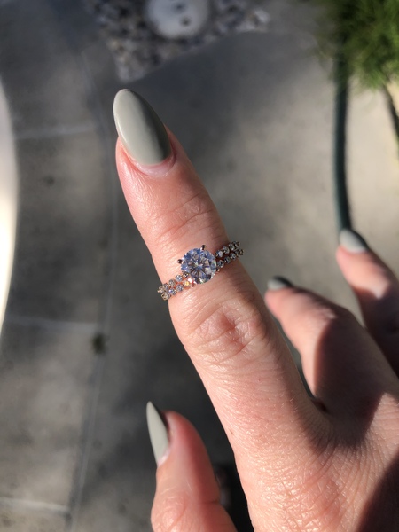 MoissaniteCo WED139 6.5mm C&C Forever One H&A GH 14k rose gold 4 prong solitaire with natural diamond side stones and natural diamond bubble band size 6.25