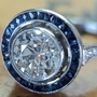 Newly made art deco style "target" ring from Sin City. Featuring an IGI certed 2.42 FVS2 lab Old European