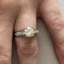 Beautiful vintage European-style engagement ring purchased from Ivy & Rose in 2024. The center diamond is estimated at 0.70ct (H–I color, SI2 clarity), set in 14k gold with single-cut diamond accents for extra charm. Total carat weight approx. 0.82ctw. Size 7. The diamond has lively fire and pretty petal faceting.