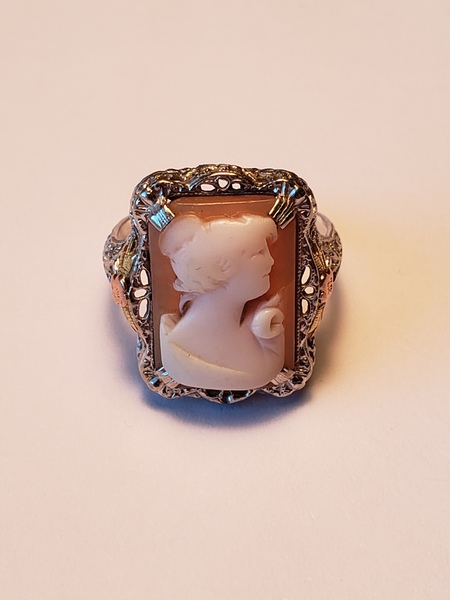 Reduced-10KWG Art Deco Era Shell Cameo Ring Size 5