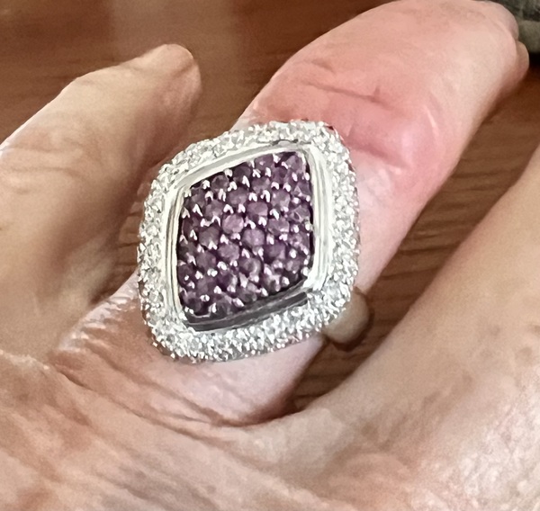 Nice right hand ruby and diamond ring. 14k White Gold. Size 7. Paypal F&F. Shipping USA included. Reasonable offers considered. Sassymont@gmail.com