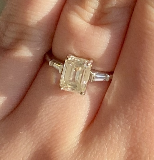 SOLD! 8x6 moissanite and diamond emerald cut ring