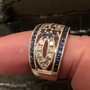 SOLD! Thank you!14k WG Vintage Diamond Sapphire Wide Band Ring Sz 6