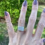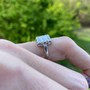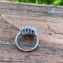 The ring is currently a size 6 and fully sizeable. It is in excellent estate condition with just a few scratches on the underside that could be easily buffed out. All the stones are secure in their settings per my jeweler.
