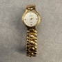 Looks like a fancy gold bracelet until you lift the cover and reveal a watch face.