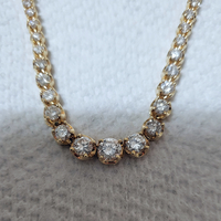 Set in 14k rosey toned yellow gold, the brooch features fifteen sparkling Old European Cut Diamonds averaging H/I color and SI-I clarity (I clarity is due to tiny nibbles to the antique diamonds). The diamonds graduate in size with the largest estimated at 0.37 carats. We have shown the brooch modeled on one of our new 14k Yellow Gold diamond cut gold ball chains not included with purchase, available separately for an additional $600.00. Your crescent will arrive with a recent NAJA appraisal so that you can obtain insurance coverage on your new heirloom treasure.$4400 is the Paypal business price, discount for Zelle or bank transfer. 0% Interest Layaway Plans available. Video is available for immediate viewing on my Instagram page Vanessaatheritagejewelry or by requesting a you tube video link.