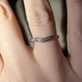 For lovers of subtle luxury: this moissanite wedding band pairs simple design with sparkling stones. The half-eternity setting offers a refined shimmer — ideal as a wedding band or stacking ring, especially if you prefer understated elegance over bold sparkle.