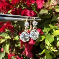 I purchased these lovely and unusual earrings from Butter Lane Antiques 8 years ago for $1000 and have only worn them to take these ear-shot photos. They consist of beautifully-colored opals surrounding a demantoid center. The opal drops are attached by two delicate platinum chains to a surmounting opal and shepherd's hook for pierced ears. About 1.5 in long from top of hook to bottom of earring. Weight is 0.04 oz per earring.