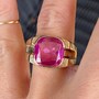 This simple gold ring is full of subtle elegance, with an impressive, plain signet setting that melts into the shoulders, a comfortable band and a substantial weight. It has an undeniable presence on the finger, made so by its sheer size and mirror finish (so reflective you can see your reflection - which made it difficult to photograph!).