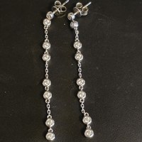 A. Lab grown 5-stone (2.5mm stones) huggie earrings, 14k rose gold, made by Ouros Jewels. Clasps are quite secure but easy to operate. Barely worn, I apparently prefer a smaller-diameter hoop. Here’s the Etsy listing: https://www.etsy.com/listing/917655147/round-lab-grown-diamond-earrings-18-kt