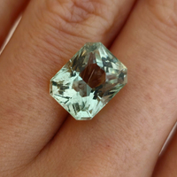 This beautiful stone has been stored in light and climate controlled conditions and part of my personal collection. It has a unique seafoam color and clarity that really shows off the asscher facets and an elegant presence. I did my best to photograph it with an iPhone to capture its exquisiteness.
