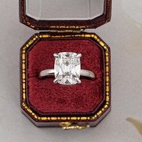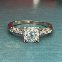 6mm cushion cut Moissanite stone set in 14K WG with 1/6 ct diamonds. Size 7