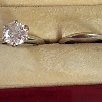 First up is a lovely and timeliness Palladium engagement ring setting (marked "Palladium LC"). This is currently in a size 6 and can be easily sized by your jeweler. It can hold a stone around 0.6 ct.