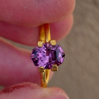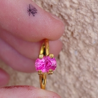 I had been looking around for a cool setting for a trillion when I came upon this design from an Etsy artist. I think it's very modern and cool, but the vendor chipped my stone when setting it and didn't let me know (or respond to my message about it). That kind of ruined the experience for me, so I never wore it. But the lavender-pink spinel is still very sparkly, and the setting very neat. Perhaps it could go to a more loving home for a fraction of the price I paid. I'll include a picture of the chip. The stone is about a 7mm triangle. The ring size is 5.75.