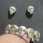 Reduced! This matching ring and earring set features satin-finished skulls with diamond eyes. The ring is a full eternity band. Both pieces are done in sterling silver. The set was made by Michelle Chang jewelry. The ring alone sells for $990, and the earrings are $186. The ring is a size 8.5 and is very comfortable. The set is in like new condition. I am not taking additional discounts on these pieces.