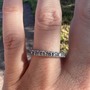 This is a gorgeous platinum band with high quality bright sparkling diamonds. What I love about this band is that it is a classic 2.4-2.5mm width, but it is heavy! I love love love feeling the weight of platinum. It’s 4.4 grams. Many bands this size are under 3g. Also, it has a nice inscription on the inside that says “Carry your Heart”. It is a size 6.5 and has approximately 1 ct of stones.