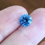 Images have not been altered in any way, the color really is that amazing. The stone is a 6.5mm lab created blue spinel custom cut by Gene Flanigan of Precision Gem. It’s just a perfect blue spinel, with a slightly “chunkier” cut than his classic round. I paid $185