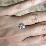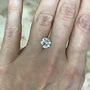 This ring is a size 5, 14k rose gold CvB 6 prong solitaire with a stunning I/J 8.6mm AVR AG. I LOVE this ring, I just think it looks too large on my size 4.75 finger.