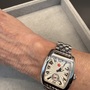 Pre-owned in excellent condition since I have rarely worn it. Light surface scratches on back of band, no visual marks or scratches on the face or crystal.
