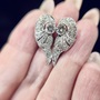 These breathtaking Vintage Estate Earrings feature classically styled Cherubs holding floral garland and interspersed with twinkling bright white diamonds over a green plique-a-jour ground. They are marked 18k gold on the back of the earrings themselves, the posts, and the butterfly backs, metal content tested and confirmed. The beautiful green enamel work glows when touched by light and is simply stunning in beauty. These are such unique and rare pieces we are only able to find a few similar examples in our research. We believe these to be reproductions of an original period piece circa the 1980s, they are most definitely Vintage but may not be original antiques. It is believed that they were cast from the original molds making them later runs of the originals. These are exceptional stunning heirloom quality earrings to be enjoyed for a lifetime. These earrings will be carefully packaged in a new gift box and shipped signature required, fully insured, and tracked via 2 day FedEx.