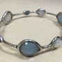 Sterling silver Ippolita Wonderland Open Teardrop bangle bracelet featuring faceted pear shape blue quartz and mother of pearl doublets and hammered finish throughout.