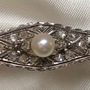 46 points of old cut diamonds set in white gold, finished with milgrain detailing and a pin stem clasp.
