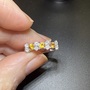 3 stone pink sapphire - sold as lab created. Two wee teeny natural diamonds on both sides. Hot pink under ultraviolet (pictured). Ring weighs 2.09g